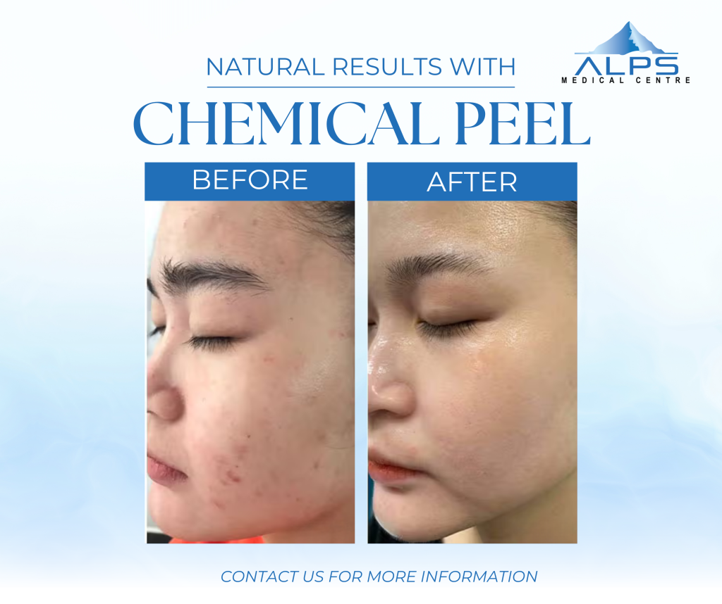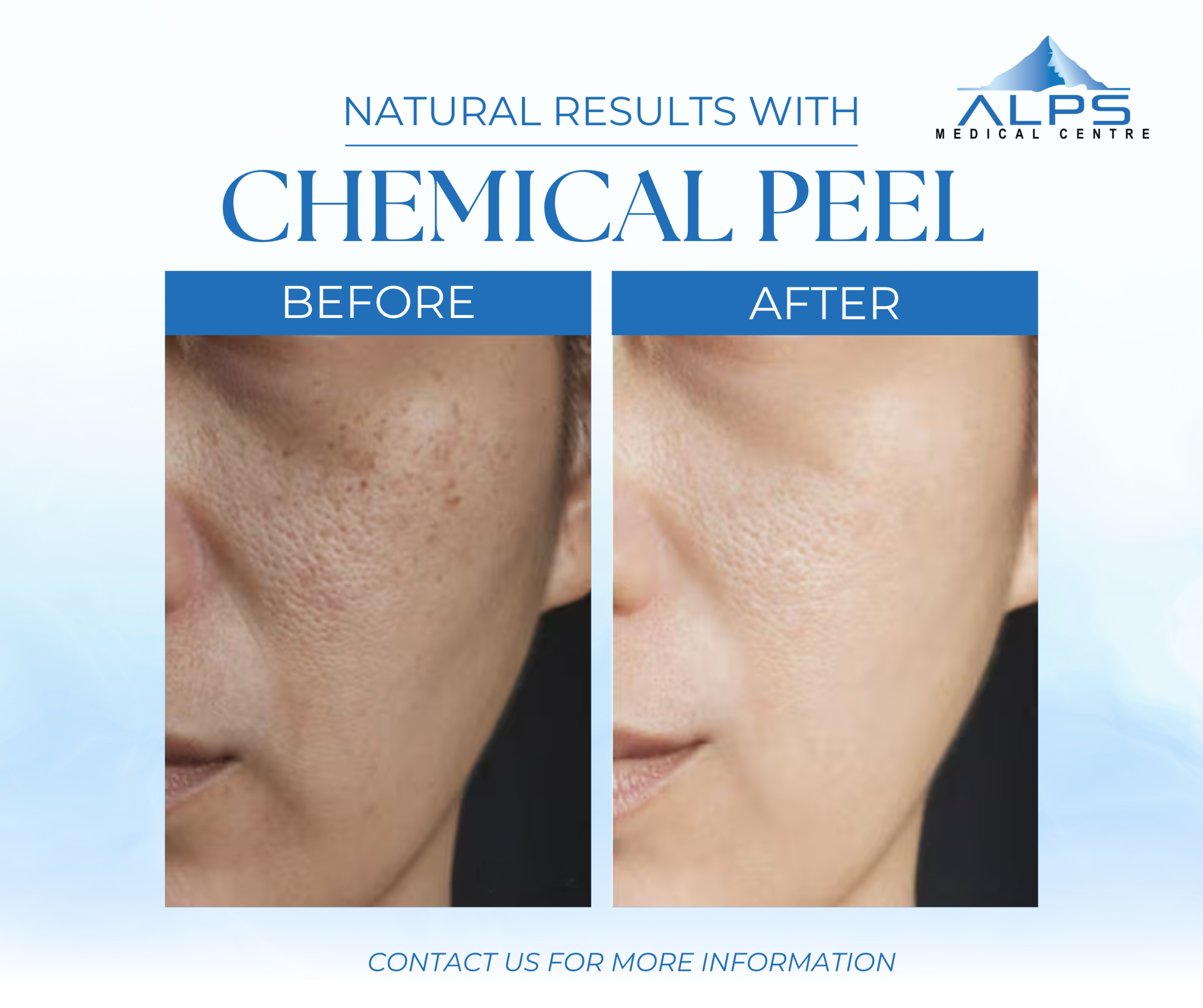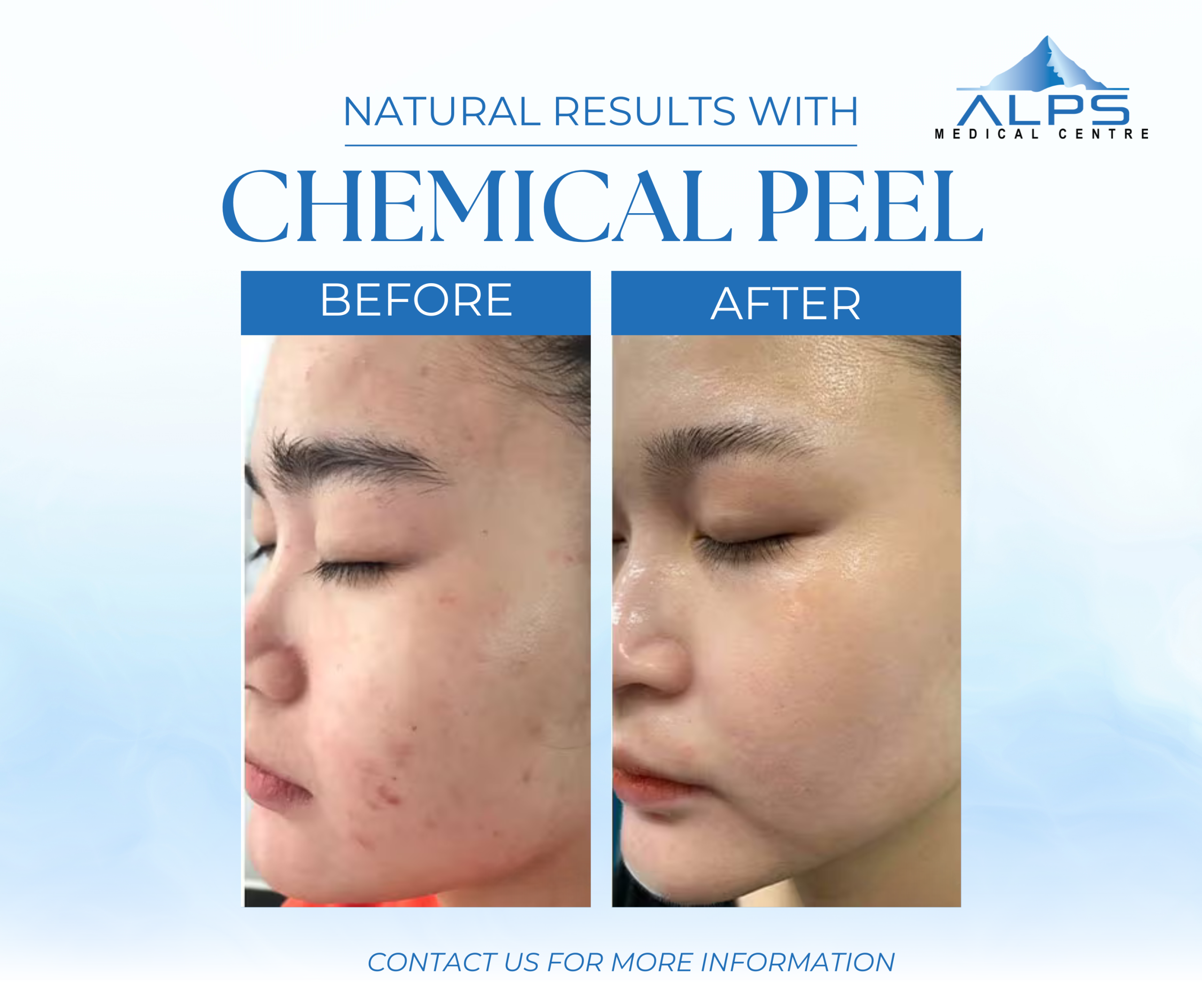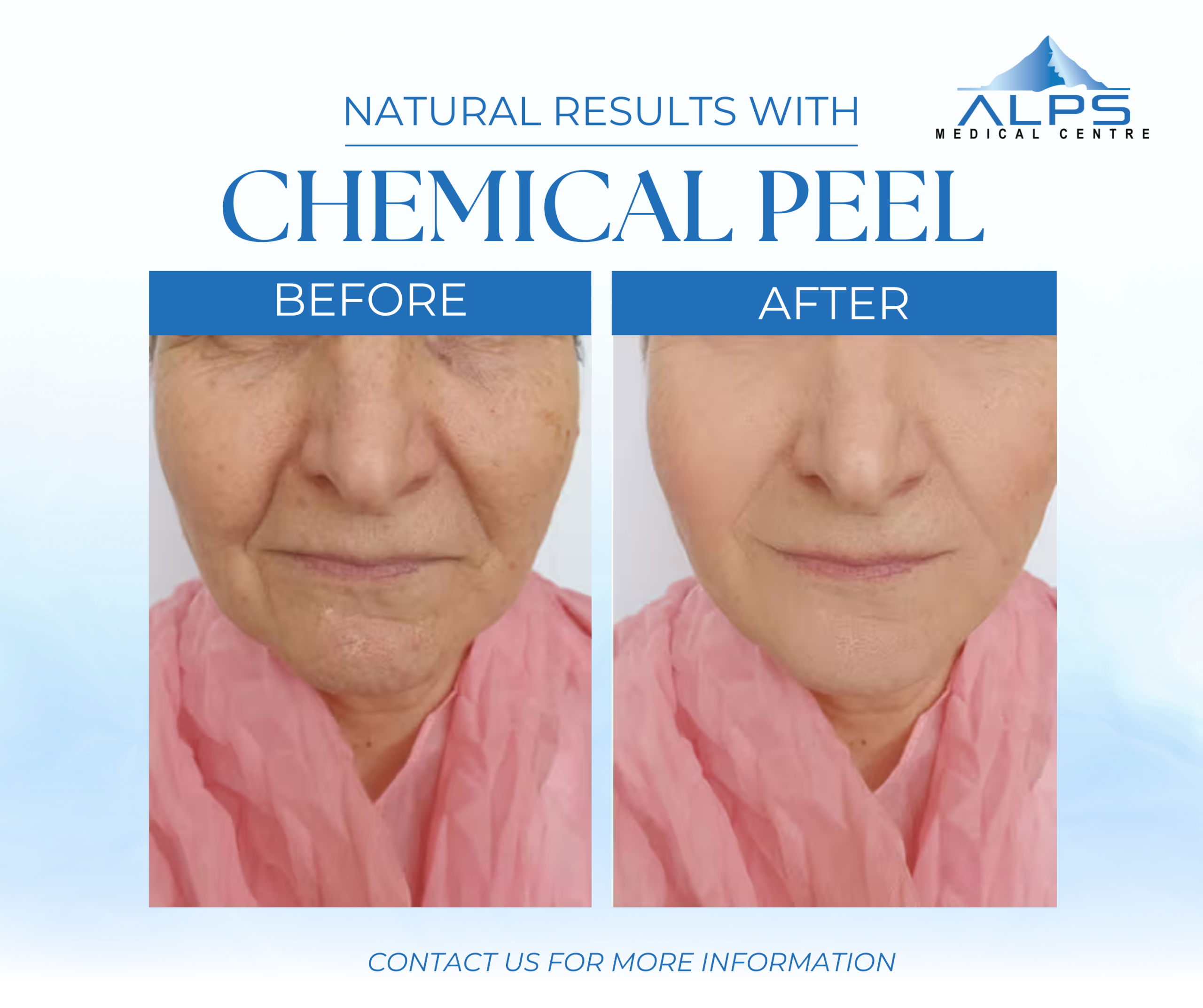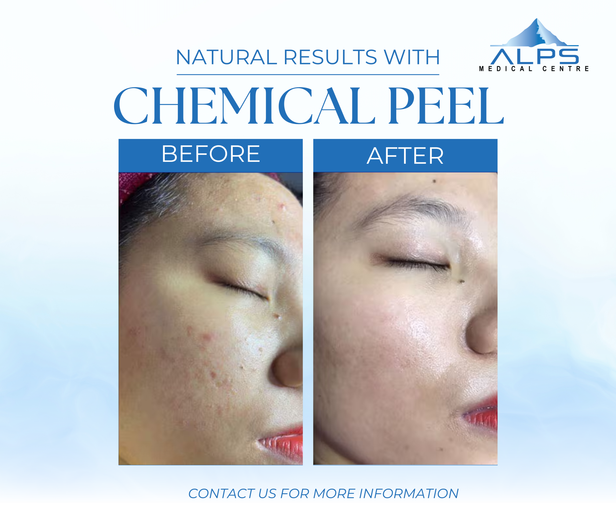 Chemical Peel is a skin rejuvenation treatment that improves texture, tone, and overall appearance by removing damaged outer layers of skin.